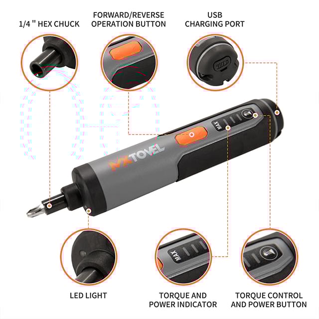 Polyvalence: Livré avec divers embouts de tournevis adaptés à différents types de vis, répondant à diverses exigences de travail.